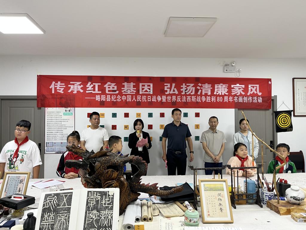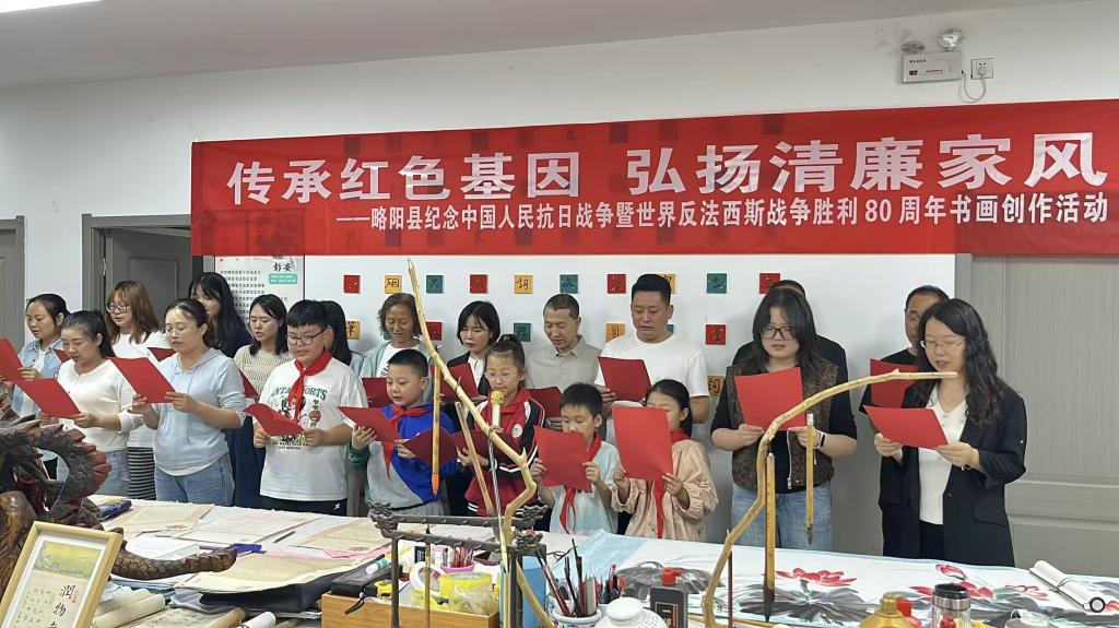 为铭记历史、缅怀先烈,弘扬伟大爱国主义精神和伟大抗战精神,2025年9月11日,县委党史研究室、县妇联、团县委、县文联联合开展以“传承红色基因·弘扬清廉家风”为主题的纪念中国人民抗日战争暨世界反法西斯战争胜利80周年书画创作活动。县委常委、宣传部部长胡炎邦出席并致辞。